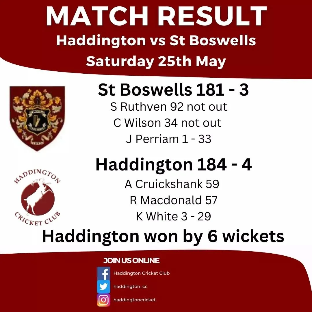 Since 1877, we have been playing cricket in Haddington. We play in ESCA Division 3, have one of the top rated Scottish sides in Last Man Stands T20, and keep a number of prestigious friendlies. Our home games play out on the idyllic, often damp, grass of Neilson Park.